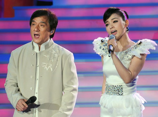 10月31日,陳思思(右)與成龍?jiān)谘莩獣?huì)上表演。新華社發(fā)(吳景騰 攝)