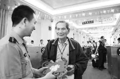 今年是媽祖誕辰1050周年,首個以整船、包船形式赴媽祖故鄉(xiāng)朝圣的臺灣進(jìn)香團(tuán)352名臺胞,6月18日乘坐“海洋拉拉”號客輪從臺灣臺中港出發(fā),于中午1時抵達(dá)福建莆田湄洲島宮下新碼頭。83高齡的臺胞蔡明森是352名旅客中年齡最大的,剛踏進(jìn)驗放通道,他就收到莆田邊防檢查站官兵送上的禮物——中國結(jié)。 吳志 攝