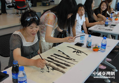 遼臺兩地婚姻家庭在學(xué)習(xí)畫竹子(圖片來源:遼寧省臺辦)