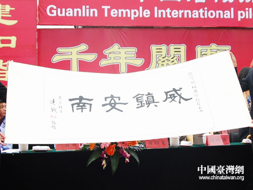 中國國民黨榮譽(yù)主席連戰(zhàn)賀詞:威鎮(zhèn)安南。圖片來源:洛陽市臺(tái)辦