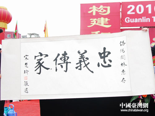 親民黨主席宋楚瑜賀詞:忠義傳家。圖片來源:洛陽市臺(tái)辦