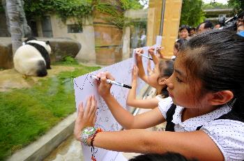 10月10日,臺灣南投的小朋友在畫大熊貓。 記者 魏培全 攝