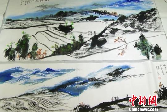 圖為兩岸和平文化藝術(shù)聯(lián)盟會(huì)秘書長李沃源畫作《元陽梯田》!钊A偉 攝