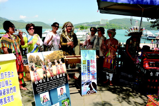 日月潭畔,玄光寺下,邵族杜咪公主文化藝術(shù)團(tuán)盡情放歌,游人可以加入其中乘興歌舞。