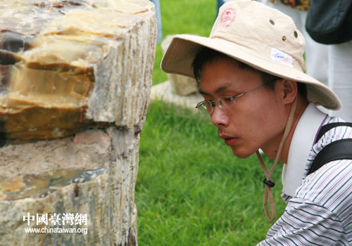 “海峽兩岸大學(xué)生古生物夏令營”的營員在觀看化石(圖片來源:遼寧省朝陽市臺辦)