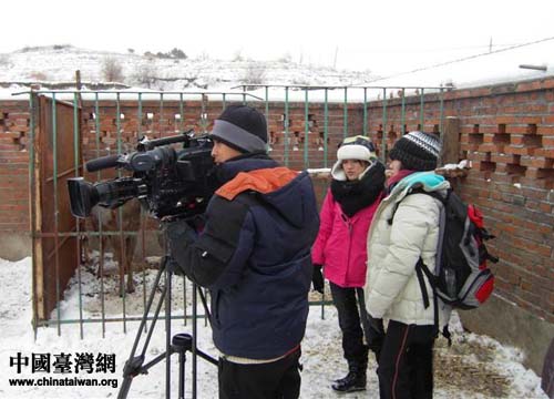 臺灣中天電視臺《臺灣腳逛大陸》攝制組在遼寧省鐵嶺市西豐縣鹿場現(xiàn)場拍攝(圖片來源:鐵嶺市臺辦)