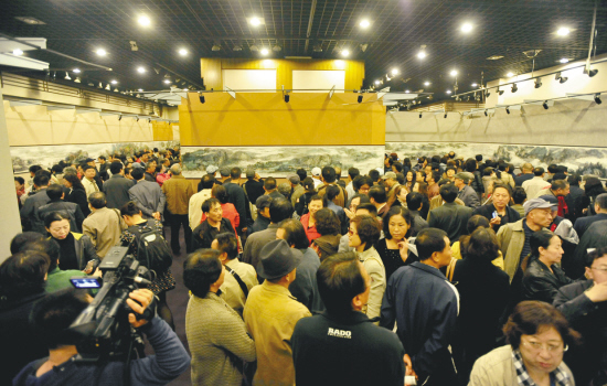 10月9日,由中國著名畫家宋雨桂主筆,中國臺灣著名畫家江明賢等60多位畫家共同繪制的國畫長卷《新富春山居圖》,全國巡展第一站來到沈陽,在遼寧省博物館展出。此展由國務(wù)院參事室、中央文史研究館、遼寧省政府共同主辦。