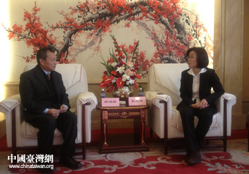 吳忠瓊會見臺塑集團南亞公司副總經(jīng)理鄭鴻國。(圖片來源:鞍山市臺辦)