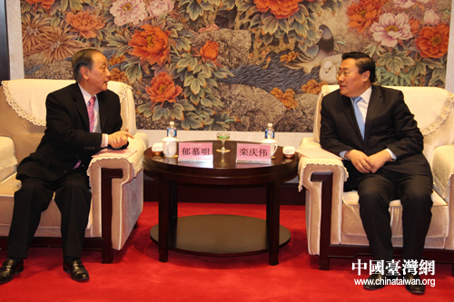 撫順市代市長欒慶偉會(huì)見臺(tái)灣新黨主席郁慕明(圖)