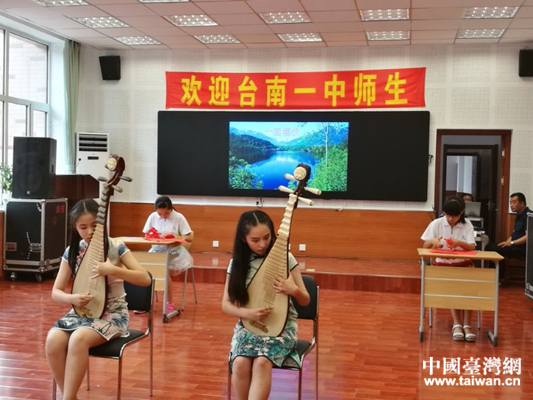 阜新市實(shí)驗(yàn)中學(xué)彈奏《十面埋伏》歡迎臺(tái)南一中師生(阜新市臺(tái)辦 蔡紅梅 攝)