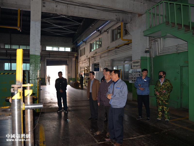 顧洪新(左2)在生產(chǎn)車(chē)間進(jìn)行參觀。(圖片來(lái)源:遼寧省臺(tái)辦)