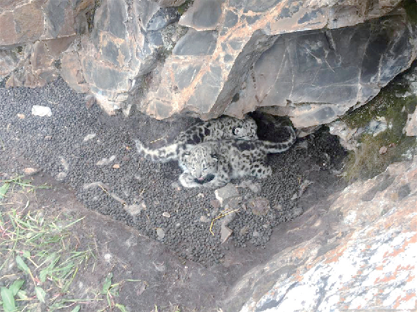 在青海省玉樹州稱多縣尕朵鄉(xiāng)拍攝到的雪豹幼崽。
