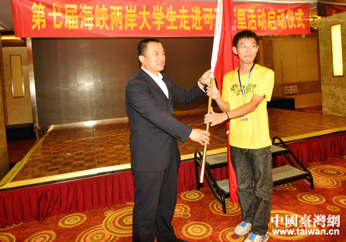 省臺辦主任趙勇向大學生代表授旗。(圖片來源:青海省臺辦)