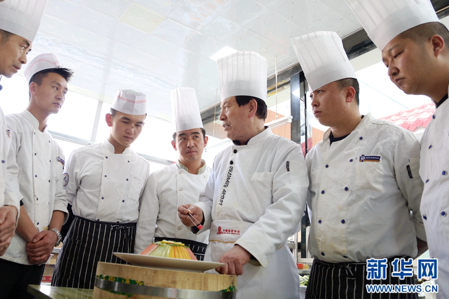 2016年1月,“青海老八盤”制作技藝正式入選西寧市第二批市級非物質(zhì)文化遺產(chǎn)保護(hù)名錄。今年71歲的范增福,是如今這一非遺項(xiàng)目的傳承人,自20歲起,范增福跟著父親開始學(xué)習(xí)制作老八盤,至今已有50多年。幾十年來,范增福積極發(fā)掘整理傳統(tǒng)菜譜,進(jìn)行傳幫帶授藝培訓(xùn),讓人間的煙火和民俗的文化升騰不熄。