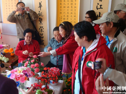中國(guó)臺(tái)灣網(wǎng)10月20日青島消息 “我會(huì)把美麗的青島展現(xiàn)給每一位居民!弊蛉眨19日)上午,臺(tái)北市松山區(qū)的26位“里長(zhǎng)”來(lái)到青島市南區(qū)湛山社區(qū)考察交流。70歲的美仁里里長(zhǎng)劉張春美說(shuō),看過青島等地的居委會(huì)后,她學(xué)到很多新東西,也有了不少新點(diǎn)子,還要將湛山社區(qū)居民的絹花手藝帶回去。