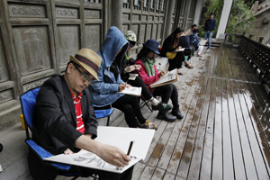 圖 :參加體驗(yàn)式交流活動(dòng)魯臺(tái)大學(xué)生在濟(jì)南大學(xué)和棗莊臺(tái)兒莊,并一起寫生創(chuàng)作