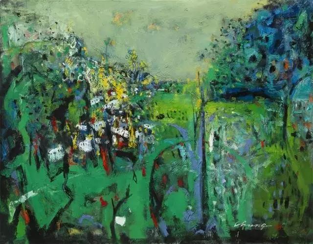 游守中的作品富于冒險(xiǎn)與嘗試,同時(shí)又溫和而深沉,極具包容性。他對(duì)構(gòu)圖章法十分注意,運(yùn)用物體的透視、色彩的感染力,形成色彩與意象的聚合變化,虛實(shí)相間,使畫面完整與平實(shí)。