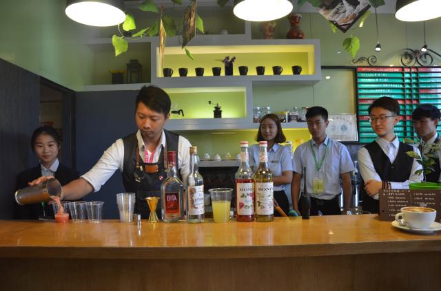 文化體驗(yàn)活動(dòng)期間,正值2017年全國職業(yè)院校技能大賽(高職組)中餐主題宴會(huì)設(shè)計(jì)賽在學(xué)院進(jìn)行,臺(tái)灣大仁科技大學(xué)的師生們現(xiàn)場(chǎng)進(jìn)行了賽事觀摩,并在國際花式調(diào)酒冠軍許博勝老師的帶領(lǐng)下,在開放賽事中現(xiàn)場(chǎng)進(jìn)行了花式調(diào)酒表演及咖啡沖泡展示,并為現(xiàn)場(chǎng)來賓們制作了精美的飲品,其精彩的表演和高超的技術(shù)得到了來賓們的一致稱贊。