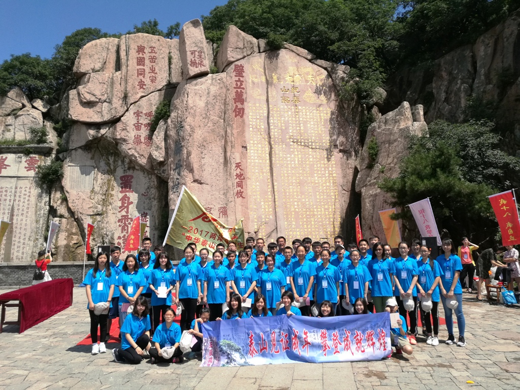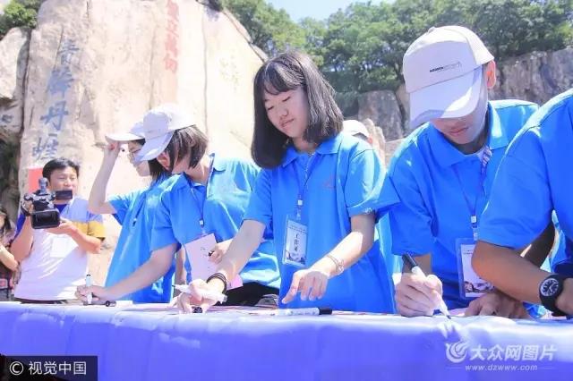隨后一路攀登,在泰山大觀峰舉行了“海峽兩岸·情重泰山”2017兩岸中學(xué)生中華泰山成人禮活動。山東省臺辦、泰安市臺辦、泰山景區(qū)相關(guān)領(lǐng)導(dǎo)出席活動,來自臺灣高雄明誠中學(xué)和泰安第十九中學(xué)的60余名青年學(xué)子在泰山的見證之下宣誓成人。