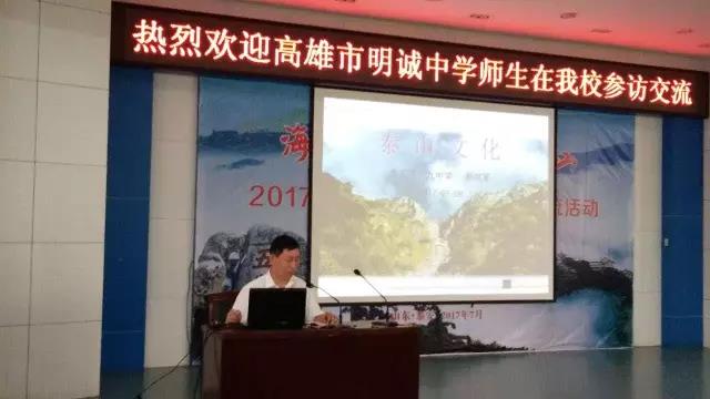 7月7日至8日,應(yīng)泰安市人民政府臺灣事務(wù)辦公室邀請,臺灣高雄市明誠中學(xué)青年學(xué)生及教育界人士30余人蒞臨泰安,與泰安第十九中學(xué)進(jìn)行兩岸中學(xué)生泰山參訪交流活動,學(xué)校選拔部分優(yōu)秀學(xué)生參與互動交流。