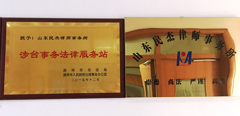 2015年, 濱州市臺辦聯(lián)合濱州市司法局出臺了《關(guān)于設立“濱州市涉臺事務法律服務站”的意見》,決定作為“法律服務站”的試點,先期設立在山東民杰律師事務所,后續(xù)根據(jù)試點效果及服務需求大小,逐步在全市公、檢、法等各部門設立多個站點。該“法律服務站”通過向臺胞臺商臺企臺屬提供法律咨詢,開展法律宣傳,擔任法律顧問,代理各類案件,辦理涉臺公證,為臺資企業(yè)維權(quán)提供法律保障,幫助臺資企業(yè)建立經(jīng)營風險預測預警機制,在促進臺資企業(yè)健康快速發(fā)展,進一步優(yōu)化對臺法律服務環(huán)境發(fā)揮了重要作用。