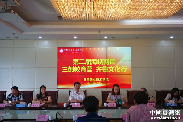 7月2日,在日照職業(yè)技術學院,兩地師生共同參加了海峽兩岸“三創(chuàng)”教育營開營儀式,日照市臺辦副調研員楊允珍出席開營儀式,日照職業(yè)技術學院黨委委員、副院長韓振出席儀式并致辭,會計學院、人文與旅游學院、創(chuàng)意設計學院、合作與交流中心相關負責人出席,院長助理、合作與交流中心主任丁立孝主持儀式。