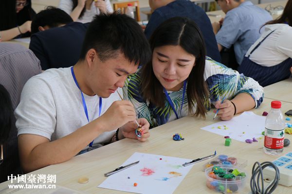 兩岸師生參與軟陶創(chuàng)意體驗。(圖片來源:日照市臺辦)