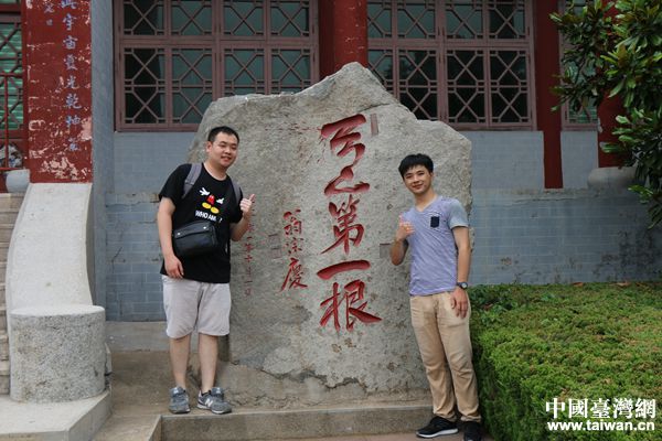 臺(tái)灣學(xué)生與翁宗慶題詞碑合影留念。(圖片來源:日照市臺(tái)辦)