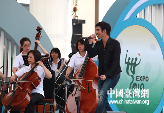 16日上午,臺北案例館代言人王力宏與臺北市立交響樂團,在上海世博園內(nèi)聯(lián)袂演出。當天,“臺北印象·文化饗宴”演出活動在上海世博園城市廣場舉行。(中國臺灣網(wǎng) 田云鵬 攝)