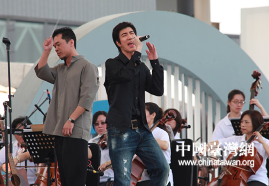 中國臺灣網(wǎng)6月16日上海消息 16日上午,臺北案例館代言人王力宏與臺北市立交響樂團,在上海世博園內(nèi)聯(lián)袂演出。當天,“臺北印象·文化饗宴”演出活動在上海世博園城市廣場舉行。(中國臺灣網(wǎng) 田云鵬 攝)