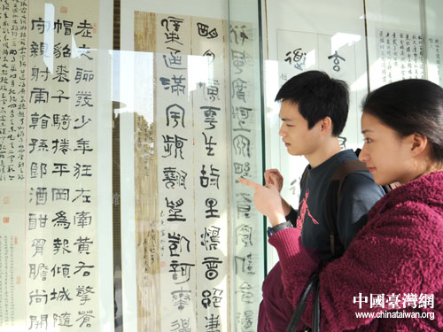 中國臺灣網(wǎng)1月5日上海消息 樹綠、花開——雖是初冬,卻如暖秋。人文藝術氛圍讓人浸心——上海戲劇學院建院65周年的映像定格在2010年12月1日。筆者應邀參加了校慶的部分活動。在圖書館,上海戲劇學院、上海市書法家協(xié)會聯(lián)合舉辦的第二屆研究生班、第一屆本科書法班舉辦的書法作品畢業(yè)展覽吸引了不少校友、藝術家、學者和參觀者。