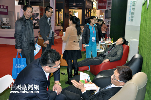 在“臺(tái)灣主題展區(qū)”東側(cè),記者見到了臺(tái)灣十大設(shè)計(jì)師之一的巫永堅(jiān)先生,他同時(shí)又是上海永堅(jiān)企業(yè)形象策劃《有》的總經(jīng)理。巫永堅(jiān)向記者介紹,他們這次共租用了16個(gè)展位,展示來自臺(tái)灣的連鎖業(yè)品牌產(chǎn)品。其中,馬祖龍廷酒、小蟲手機(jī)、綠動(dòng)律動(dòng)椅等多個(gè)臺(tái)灣品牌,是臺(tái)灣連鎖業(yè)的知名品牌,這次專門通過上海的展覽展示會(huì),讓更多的大陸民眾能夠面對(duì)面的了解品牌特色,并希望通過展覽會(huì)能夠服務(wù)加盟者。