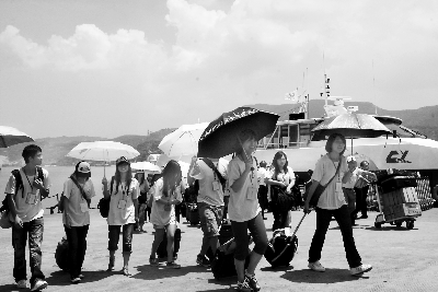 17日上午11時40分,由100名馬祖學生組成的馬祖世博游旅行團,經(jīng)“兩馬”航線抵達福州馬尾港。福州邊檢站為旅行團啟動快速通關(guān)服務,僅用15分鐘就完成了旅行團的通關(guān)工作。王鵬 攝