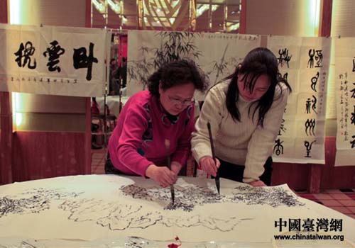 書畫大師在現(xiàn)場(chǎng)潑墨獻(xiàn)寶(陜西省臺(tái)辦 張群莉 攝)