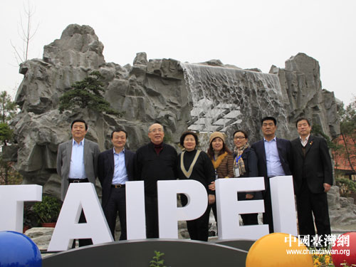 在世園會(huì)園區(qū)臺(tái)北館前合影留念。(陜西臺(tái)辦張群莉 攝)