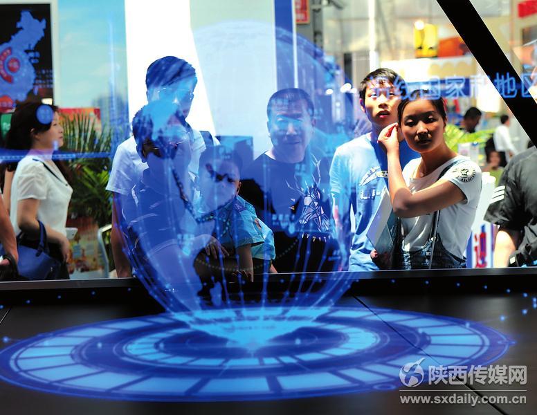 5月23日,西安曲江國際會展中心展館里,渭南一家企業(yè)研制的RHD全息成像系統(tǒng)受到參會客商和觀眾的關(guān)注。 記者 母家亮攝