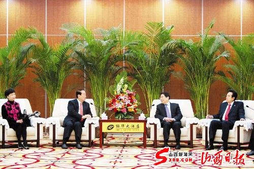 袁純清代表中共山西省委、省政府和3400萬山西人民,對(duì)宋楚瑜一行來山西參訪表示誠摯歡迎,對(duì)宋楚瑜多年來為兩岸關(guān)系發(fā)展所作的貢獻(xiàn)表示欽佩,并向宋楚瑜一行介紹了山西省情特點(diǎn)和經(jīng)濟(jì)社會(huì)發(fā)展情況。他說,2005年5月,宋主席的大陸溝通之旅,對(duì)推動(dòng)兩岸關(guān)系和平穩(wěn)定發(fā)展,產(chǎn)生了重要影響。宋主席長期以來堅(jiān)持“一個(gè)中國”,致力于兩岸關(guān)系和平發(fā)展,積極推動(dòng)兩岸交流,令人贊賞和敬佩,相信宋主席此次來山西參訪,將為晉臺(tái)交流合作開辟新的篇章。他指出,五千年文明看山西,山西是中華民族重要發(fā)祥地之一,“地上”人文資源首屈一指,民族文化遺產(chǎn)豐厚,華夏民族的始祖黃帝和炎帝都曾在山西活動(dòng),堯舜禹均建都山西,現(xiàn)存宋、遼、金以前地面古建筑占大陸的70%以上,國家重點(diǎn)文物保護(hù)單位居全國之首。中原農(nóng)耕文明和北方游牧文明在山西交匯,佛教文化、民俗文化、大院文化、根祖文化交相輝映,從中感受到中華文明的燦爛輝煌。山西“地下”資源十分豐富,煤炭儲(chǔ)量占到全國儲(chǔ)量的1/4,60多年來產(chǎn)煤120億噸,外調(diào)90億噸,占省際外調(diào)煤炭的70%,為大陸經(jīng)濟(jì)發(fā)展作出了重要貢獻(xiàn)。近年來,山西經(jīng)濟(jì)持續(xù)快速發(fā)展,新興產(chǎn)業(yè)加快壯大,綜合實(shí)力不斷增強(qiáng),社會(huì)事業(yè)全面進(jìn)步,人民生活水平顯著提高,三晉大地?zé)òl(fā)出勃勃生機(jī)。特別是我們堅(jiān)持以科學(xué)發(fā)展觀為指導(dǎo),抓住國家把山西確定為資源型經(jīng)濟(jì)轉(zhuǎn)型綜合配套改革試驗(yàn)區(qū)的難得機(jī)遇,以轉(zhuǎn)型跨越發(fā)展為主線,以煤為基、多元發(fā)展,推進(jìn)煤炭資源整合和企業(yè)兼并重組,做好地上地下兩篇文章,促進(jìn)煤與非煤產(chǎn)業(yè)協(xié)調(diào)發(fā)展,努力在“十二五”期間再造一個(gè)新山西。