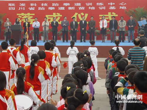 臺資企業(yè)聯(lián)發(fā)科技資助的綿竹市富發(fā)新建小學(xué)“聯(lián)發(fā)科技跆拳道訓(xùn)練中心”舉行落成儀式。(德陽市臺辦甘和林 攝)