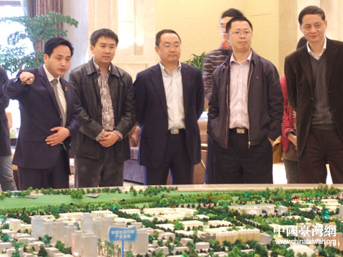 市臺(tái)辦一行參觀蒲江縣壽安新城總體規(guī)劃模型。圖片來源:成都市臺(tái)辦