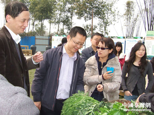 市臺(tái)辦一行在新津縣興義鎮(zhèn)臺(tái)灣翔生有機(jī)生態(tài)農(nóng)場(chǎng)調(diào)研。圖片來源:成都市臺(tái)辦