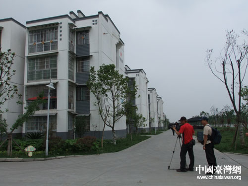 采訪拍攝重建的綿竹市漢旺新鎮(zhèn)。(德陽(yáng)市臺(tái)辦甘和林 攝)