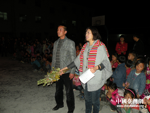張平宜和大營盤學(xué)校的羅校長共同主持歡慶彝族年篝火晚會(圖片來源:四川省臺辦)