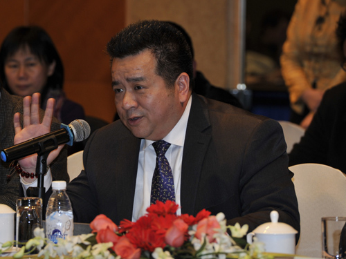 成都市臺(tái)資企業(yè)協(xié)會(huì)會(huì)長高錦樂在座談會(huì)上發(fā)言。(圖片來源:四川省臺(tái)辦)