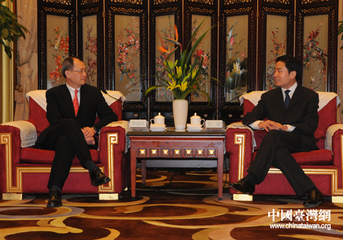 四川省副省長(zhǎng)甘霖(右)在成都會(huì)見臺(tái)泥集團(tuán)董事長(zhǎng)辜成允(左)。(圖片來源:四川省臺(tái)辦)