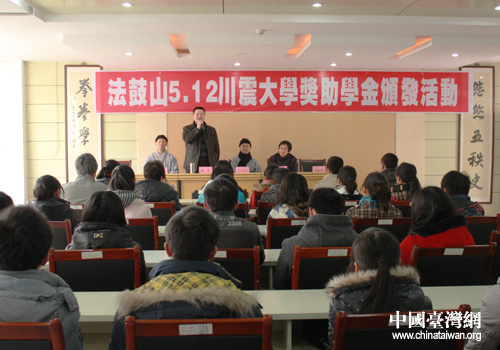 臺灣法鼓山慈善基金會“5.12”川震大學獎助學金頒發(fā)活動。(圖片來源:綿陽市臺辦)