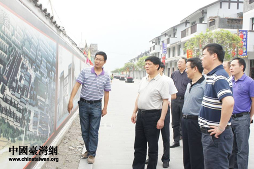四川省臺辦主任劉俊杰在雅安市石棉縣考察災后重建項目安順場新場鎮(zhèn)。(圖片來源:四川省臺辦)