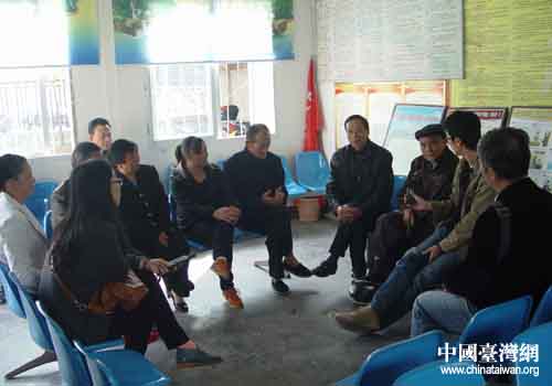 記者采訪光明村村民。(德陽市臺辦 尹顯斌 攝)