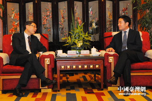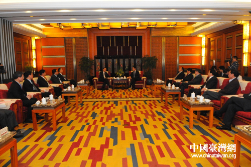 四川省副省長甘霖在成都會(huì)見臺(tái)灣;鶗(huì)副董事長兼秘書長高孔廉一行。(圖片來源:四川省臺(tái)辦)