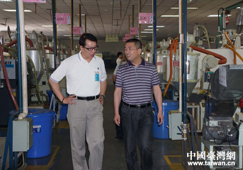 林永成深入車間生產(chǎn)一線視察。(德陽市臺辦 尹顯斌 攝)