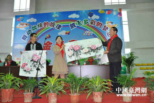 中國臺灣網(wǎng)6月14日廣元消息 四川省廣元市臺辦結合“實現(xiàn)偉大中國夢、建設美麗繁榮和諧四川”主題教育活動,在六一兒童節(jié)之際,組織臺屬書畫家7人到昭化區(qū)實驗小學,為該校700余名師生送去書畫作品50余幅,著作10本,并與老師同學進行互動交流,談理想、講修養(yǎng)、學技法、習書畫,書畫家們現(xiàn)場為老師同學作書畫100余幅,為實現(xiàn)偉大中國夢鑄造了強大精神動力。